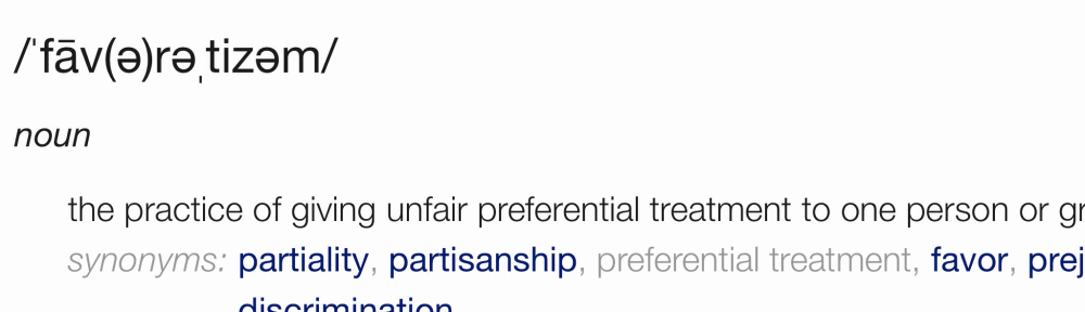 Favoritism is showing partiality toward one person or group over others with equal claims! It’s the state of being the “favorite.” Favoritism is prejudice! It’s discrimination! And, it’s favoritism that can escalate into racism or sexism! It’s something that is absolutely devastating to relationships; especially, within families! Abraham passed on this sin, of favoritism, to his kids. When you get to Genesis 26 after his son Isaac married Rebekah, they have 2 boys & the text tells us that Isaac played “favorites” with Esau; while, Rebekah played “favorites” with Jacob. Then, mom helps her favorite son, Jacob, deceive dad; and, his favorite son, Esau, out of the family blessing that should have been Esau’s by birthright.